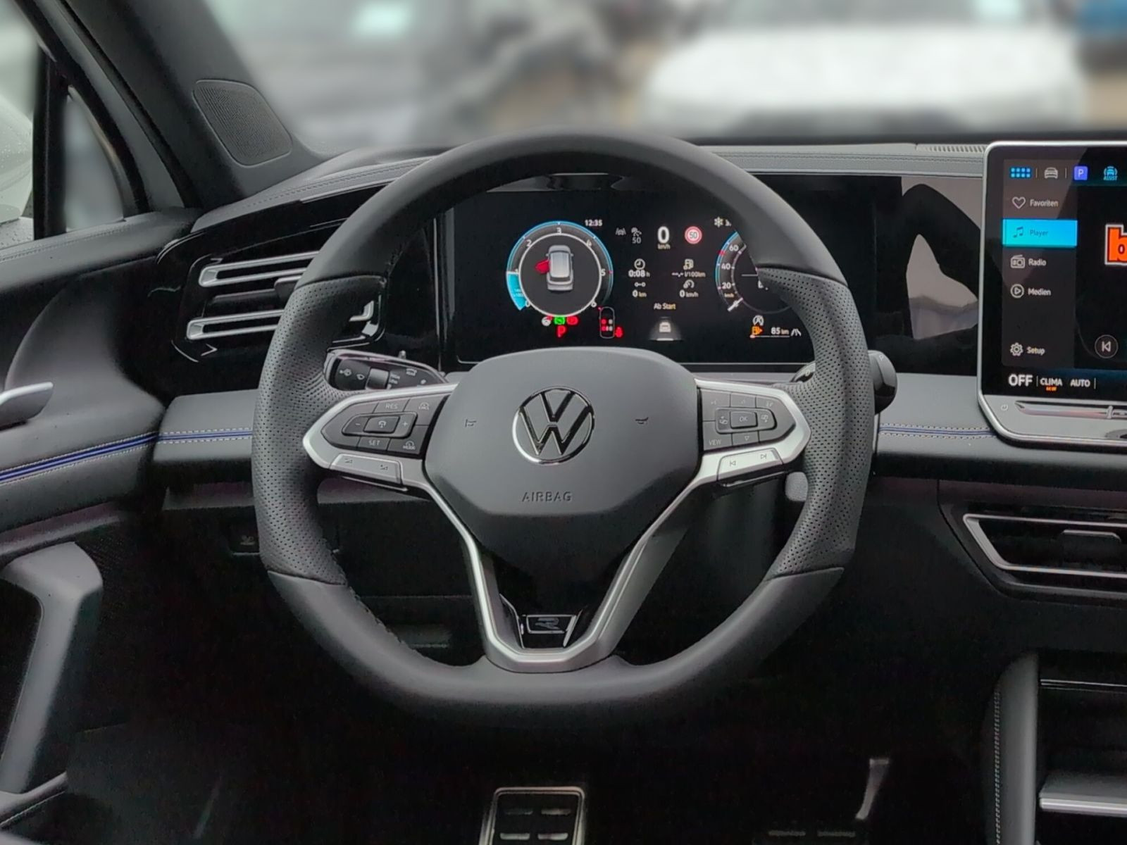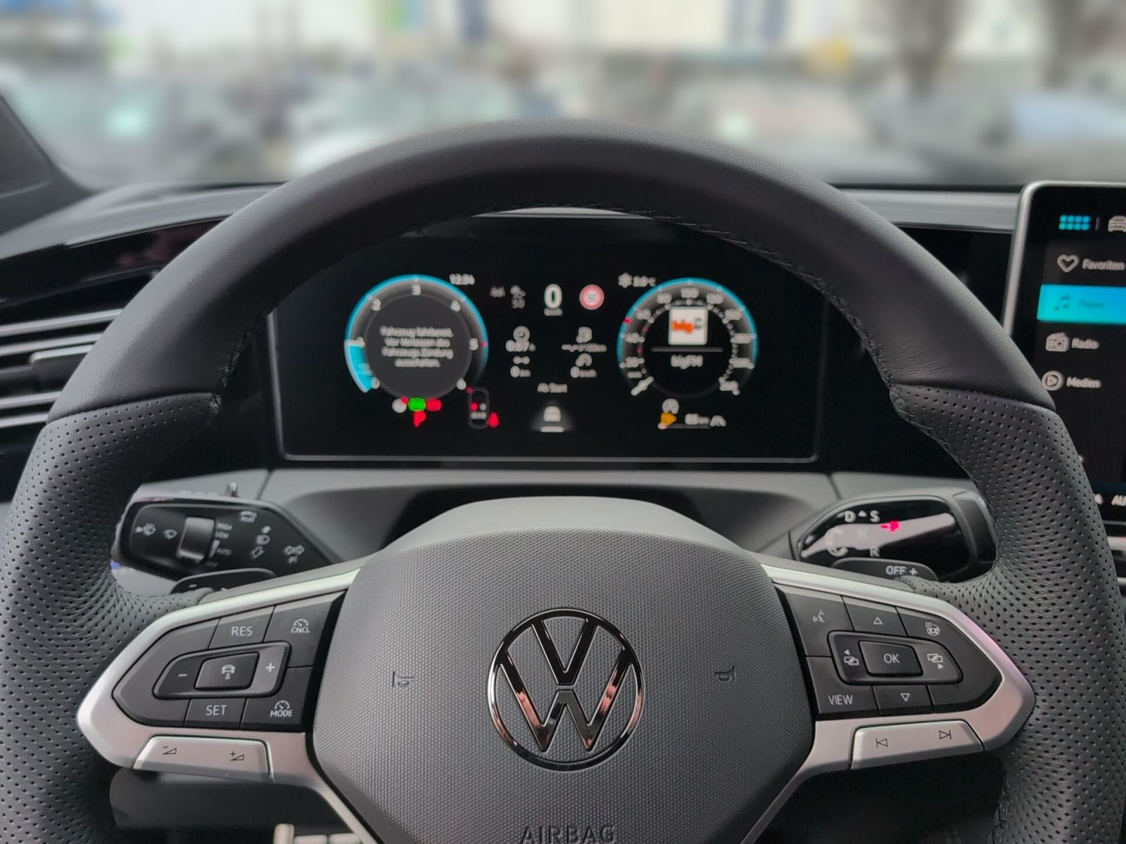 » Vordersitze mit Massagefunktion» Digital Cockpit Pro, mehrfarbig, verschiedene Info-Profile wählbar Assistenzsysteme: » Elektronisches Stabilisierungsprogramm und elektromechanischer Bremskraftverstärker» Fahrassistent Travel Assist, Spurhalteassistent Lane Assist und Emergency Assist» Spurwechselassistent Side Assist, Ausparkassistent und Ausstiegswarnung» Reifenkontrollanzeige» Proaktives Insassenschutzsystem» Fernlichtassistent Light Assist» Notbremsassistent Front Assist mit Fußgänger- und Radfahrererkennung» Regensensor» Leuchtweitenregulierung dynamisch, mit dynamischem Kurvenfahrlicht» Automatische Distanzregelung ACC stop & go» Abbiege- und Schlechtwetterlicht» Ablenkungs- und Müdigkeitserkennung» Geschwindigkeitsbegrenzer mit vorausschauender Regelung» Mit Multifunktionskamera» Verkehrszeichenerkennung» Berganfahrassistent Multimedia: » Navigationssystem» Diversity-Antenne für FM-Empfang» App-Connect Wireless für Apple CarPlay und Android Auto» Digitaler Radioempfang DAB+» 2 USB-C-Schnittstellen vorn, 2 USB-C-Ladebuchsen an der Mittelkonsole hinten, Ladeleistung bis zu 45 W Technik & Sicherheit: » Winterpaket inkl. Lenkrad beheizbar» Tire Mobility Set: 12-Volt-Kompressor und Reifendichtmittel» Servolenkung elektromechanisch, geschwindigkeitsabhängig geregelt» ISOFIX-Halteösen für Kindersitze auf den äußeren Rücksitzen sowie auf dem Beifahrersitz, i-Size-kompatibel» Airbag für Fahrer und Beifahrer, mit Beifahrerairbag-Deaktivierung» Abgaskonzept, WLTP3 M1, N1-I//EU6EB» Kopf- und Seitenairbags vorn und hinten, Center-Airbag» Wegfahrsperre elektronisch» Start-Stopp-System mit Bremsenergie-Rückgewinnung» Parkassistent Park Assist Plus inkl. Einparkhilfe» LED-Plus-Scheinwerfer» 3D-LED-Rückleuchten» Fahrlichtschaltung automatisch, mit LED-Tagfahrlicht sowie Begrüßungsund Verabschiedungslicht» 12-V-Steckdose in der Mittelkonsole vorn» 7-Gang-Automatikgetriebe oder DSG Beachtung: Fam. EDF» Umgebungsansicht Area View inkl. Rückfahrkamera Rear View» Klimaanlage Air Care Climatronic mit Aktiv-Kombifilter, Bedienelementen hinten und 3-Zonen-Temperaturregelung» Notruf-Service, Laufzeit 10 Jahre ab Erstauslieferung, Voraussetzung: Verfügbarkeit benötigter Mobilfunknetze» Spiegeleinstell- und Fensterheberschalter mit Applikationen in Chrom-Optik Interieur: » Multifunktions-Sportlenkrad in Leder, beheizbar, mit Schaltwippen» Gepäckraumboden in 2 Höhen einstellbar, für ebene Ladefläche» Vordersitze beheizbar, Sitzfläche und -lehne getrennt einstellbar» Innenspiegel automatisch abblendend» Mittelarmlehne vorn» Lendenwirbelstützen vorn pneumatisch einstellbar» Telefonschnittstelle Comfort mit induktiver Ladefunktion für 2 Smartphones, Ladeleistung bis zu 15 W» Sitzmittelbahnen der Vordersitze und der äußeren Rücksitzplätze in Stoff R-Line» Sport-Komfortsitze vorn Exterieur: » Türscheiben geräuschdämmend, Seitenscheiben hinten und Heckscheibe abgedunkelt» Dachreling silber eloxiert» Außenspiegel elektrisch einstell-, anklapp- und beheizbar, auf Fahrerseite abblendend, Memory-Funktion» R-Line» 4 Leichtmetallräder Coventry 8,5 J x 19 in Schwarz, Oberfläche glanzgedreht, Volkswagen R Sonstiges: » Soul-Schwarz/Soul-Schwarz/Schwarz/ Soul-Schwarz» Assistenzpaket IQ.DRIVE» Infotainment-Paket Discover» Farbe Pure White Uni» Fahrprofilauswahl» Stoßfänger im R-Line-Styling, Lufteinlass mit Chromleiste» Mittelkonsole gepolstert» Abbiegebremsfunktion und Ausweichunterstützung» Chromleisten an den Seitenfenstern» Rücksitzbank längs verschiebbar, -lehne asymmetrisch geteilt umklappbar, Neigung einstellbar, mit Durchlademöglichkeit» Dekor-Set R-Line, durchleuchtet» Dachhimmel schwarz» 12-V-Steckdose im Gepäckraum» Einstiegsleisten vorn in Aluminium» Infotainment-System mit 32,7-cm-Display (12,9 Zoll)» Ländercluster WLTP EU-Genehmigung» Hinterachsgewicht Ausführung 3» Sondermaßnahme A (Ausführung 1)» Sondermaßnahme B (Ausführung 1)» Sondermaßnahme C (Ausführung 1)» Sondermaßnahme D (Ausführung 1)» Fahrerlebnisschalter inkl. Innenraumerlebnis Atmospheres» Sprachassistent IDA Garantie 24 Monate ab Tag der Erstzulassung, Angaben zum Hersteller: Volkswagen AG, Volkswagen, Berliner Ring 2, 38440 Wolfsburg, Deutschland, +49-5361-9-0, kundenbetreuung(at)volkswagen.de, Produktinformationen: https://www.volkswagen.de/idhub/content/dam/onehub_master/downloads/product-safety/volkswagen-sicherheitshinweise-de.pdf Die angegebenen Verbrauchsangaben beziehen sich auf WLTP-Werte. Zwischenverkauf und Irrtümer für dieses Angebot sind ausdrücklich vorbehalten. Ausschlaggebend sind einzig und allein die Vereinbarungen in der Auftragsbestätigung oder im Kaufvertrag. Den genauen Ausstattungsumfang, die genauen Kilometer und den Verkaufspreis erhalten Sie von unserem Verkaufspersonal. Bitte kontaktieren Sie uns. Finanzierung