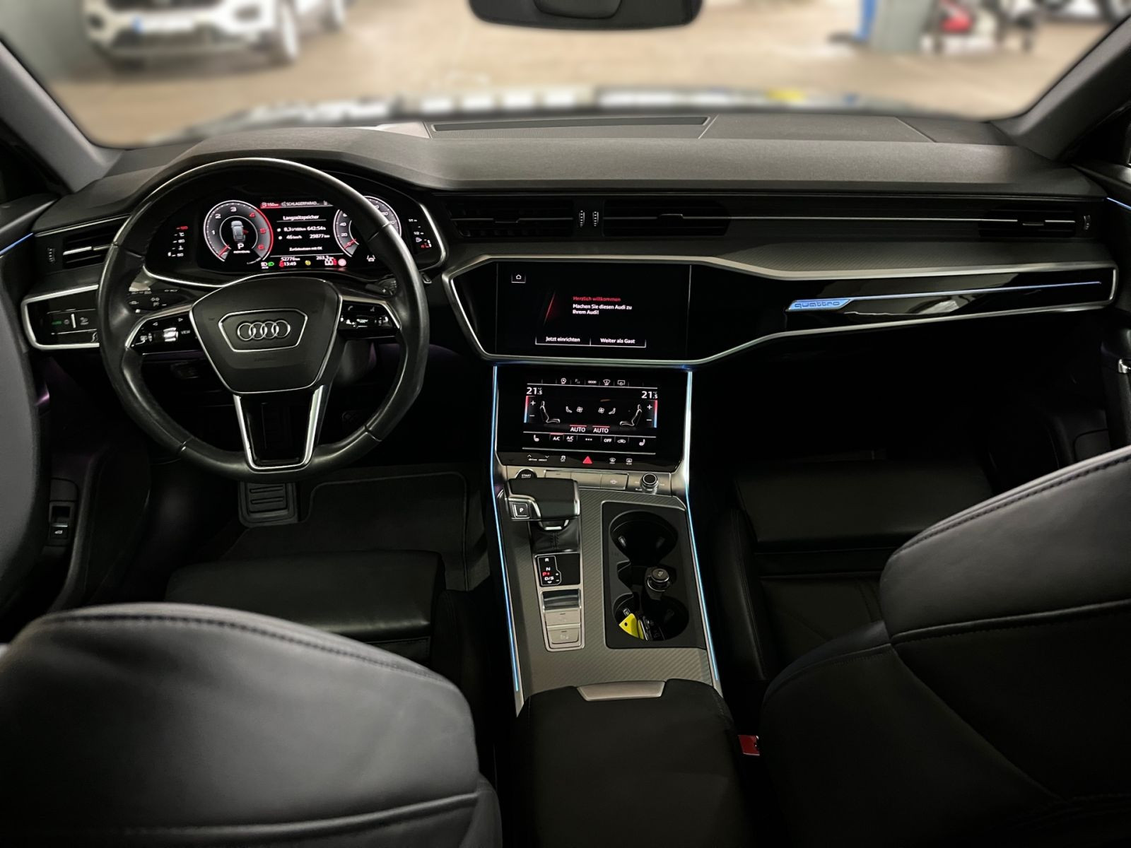 » Audi Soundsystem» Audi virtual cockpit plus» Head-up-Display » Panorama-Glasdach Assistenzsysteme: » Adaptiver Fahrassistent mit Notfallassistent» Adaptiver Geschwindigkeitsassistent mit Geschwindigkeitsbegrenzer, Effizienz-, Ausweich- und Abbiegeassistent» Audi pre sense rear» Fernlichtassistent» Geschwindigkeitsbegrenzungsanlage» Kamerabasierte Verkehrszeichenerkennung» Reifendruck-Kontrollanzeige Multimedia: » Audi Smartphone Interface» Audi connect Navigation & Infotainment» Bluetooth-Schnittstelle» Digitaler Radioempfang» MMI Navigation plus mit MMI touch response Technik & Sicherheit: » AdBlue-Tank mit erhöhtem Füllvolumen» Adaptive Scheibenwischer mit integrierten Waschdüsen» Audi connect Notruf & Service mit Audi connect Remote & Control» Audi drive select» Einparkhilfe plus mit Umgebungsanzeige » Kindersicherheits-Paket» Kindersitzbefestigung ISOFIX für den Beifahrersitz» Kindersitzbefestigung ISOFIX und Top Tether für die äußeren Fondsitze» Komfortschlüssel mit sensorgesteuerter Gepäckraumentriegelung» Komfortschlüssel mit sensorgesteuerter Gepäckraumentriegelung, ohne Safelock» LED-Heckleuchten» Seitenairbags vorn und hinten inkl. Kopfairbagsystem und beleuchteten Gurtschlössern» Start-Stop-System» Tagfahrlicht» tiptronic (für Allrad) Interieur: » Bedientasten schwarz glänzend mit haptischem Feedback und Aluminiumoptik Interieur» Einstiegsleisten mit Aluminiumeinlegern vorne und hinten» Innenspiegel automatisch abblendend, rahmenlos» Komfortmittelarmlehne vorn» Leder Valcona » Lederlenkrad 3-Speichen mit Multifunktion, Schaltwippen und Lenkradheizung» Rücksitzbank umklappbar (Fondsitze 2+1 Sitzer)» Sitzheizung vorn Exterieur: » Dachreling in Aluminium» Frontscheibe in Wärmeschutzverglasung» Gepäckraumklappe elektrisch öffnend und schließend» Räder, 5-Doppelspeichen, graphitgrau, glanzgedreht, 8,5Jx19, Reifen modellspezifisch» Vorbereitung für Anhängevorrichtung Sonstiges: » Ambiente-Lichtpaket plus» Top-Infotainment Premium (MIB3) Angaben zum Hersteller: AUDI AG, Audi, Auto-Union-Straße 1, 85057 Ingolstadt, Deutschland, +49-841-89-0, kundenbetreuung(at)audi.de, Produktinformationen: https://www.audi.de/de/rechtliches/gpsr/ Die angegebenen Verbrauchsangaben beziehen sich auf WLTP-Werte. Zwischenverkauf und Irrtümer für dieses Angebot sind ausdrücklich vorbehalten. Ausschlaggebend sind einzig und allein die Vereinbarungen in der Auftragsbestätigung oder im Kaufvertrag. Den genauen Ausstattungsumfang, die genauen Kilometer und den Verkaufspreis erhalten Sie von unserem Verkaufspersonal. Bitte kontaktieren Sie uns. Finanzierung