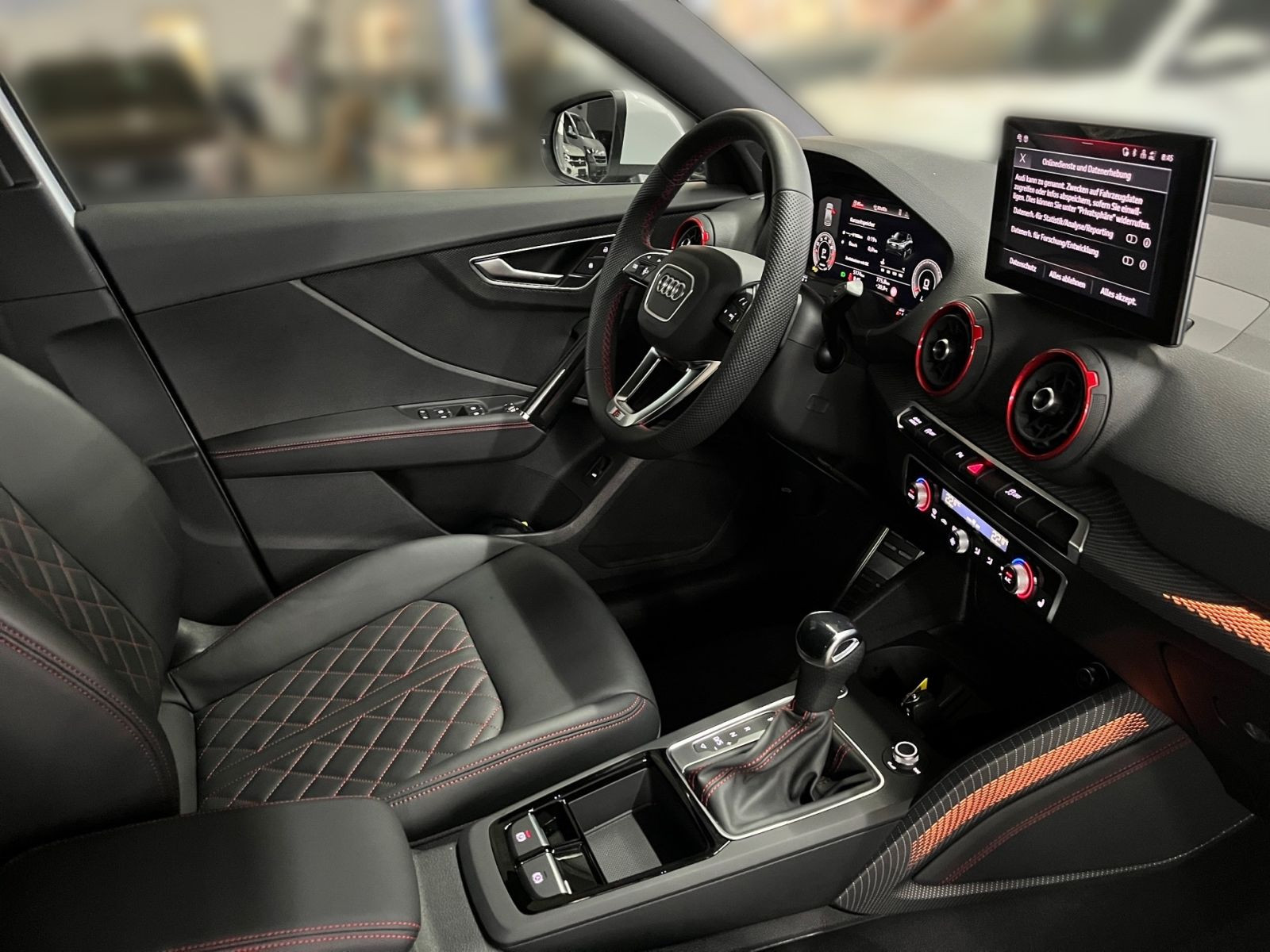 » Audi Soundsystem » Audi virtual cockpit plus Assistenzsysteme: » Ablenkungs- und Müdigkeitserkennung» Adaptiver Fahrassistent mit Notfallassistent» Adaptiver Geschwindigkeitsassistent » Audi pre sense front für adaptiven Geschwindigkeitsassistenten» Fernlichtassistent» Kamerabasierte Verkehrszeichenerkennung» Reifendruck-Kontrollanzeige Multimedia: » Ablage- und Gepäckraumpaket mit USB-Ladeschnittstellen im Fond» Audi connect Navigation & Infotainment» Digitaler Radioempfang» MMI Navigation plus mit MMI touch » MMI Radio plus» USB-Schnittstelle mit Ladefunktion Technik & Sicherheit: » Abgaskonzept, WLTP3 M1, N1-I//EU6EB» Airbags vorn, Beifahrerairbag deaktivierbar» Audi drive select» ISOFIX und Top Tether für Fondsitze außen» Kindersicherheits-Paket» Kindersitzbefestigung ISOFIX für den Beifahrersitz» Klima- und Komfortpaket » Komfortklimaautomatik» Komfortschlüssel, ohne Safelock» Pedalerie und Fußstütze aus Edelstahl» S tronic» Seitenairbags vorn und Kopfairbagsystem» Start-Stop-System mit Rekuperation» Tagfahrlicht Interieur: » Einstiegsleisten mit Aluminiumeinlegern vorn, beleuchtet, S-Schriftzug» Komfortmittelarmlehne vorn» Leder Feinnappa mit S-Prägung» Lederlenkrad 3-Speichen mit Multifunktion plus und Schaltwippen» Rücksitzlehne geteilt umklappbar» Sitzheizung vorn Exterieur: » Anhängevorrichtung » Gepäckraumklappe elektrisch öffnend und schließend» Sonnenschutzverglasung abgedunkelt Sonstiges: » 4-Zyl. Ottomotor 1,5 L/110 KW TSI Grundmotor ist: TJ7/N09/T9F/T57/T0D» Ambiente-Lichtpaket plus» Interieurelemente in Kunstleder» Kindersicherung elektrisch betätigt» Q2 S line » S line Interieurpaket » Sideblades in Wagenfarbe» Stoßfänger S line in Volllackierung (Wagenfarbe)» Wärmeschutz- und Akustikverglasung Frontscheibe mit grauem Colorstreifen Garantie 60 Monate ab Tag der Erstzulassung, Angaben zum Hersteller: AUDI AG, Audi, Auto-Union-Straße 1, 85057 Ingolstadt, Deutschland, +49-841-89-0, kundenbetreuung(at)audi.de, Produktinformationen: https://www.audi.de/de/rechtliches/gpsr/ Die angegebenen Verbrauchsangaben beziehen sich auf WLTP-Werte. Zwischenverkauf und Irrtümer für dieses Angebot sind ausdrücklich vorbehalten. Ausschlaggebend sind einzig und allein die Vereinbarungen in der Auftragsbestätigung oder im Kaufvertrag. Den genauen Ausstattungsumfang, die genauen Kilometer und den Verkaufspreis erhalten Sie von unserem Verkaufspersonal. Bitte kontaktieren Sie uns. Finanzierung