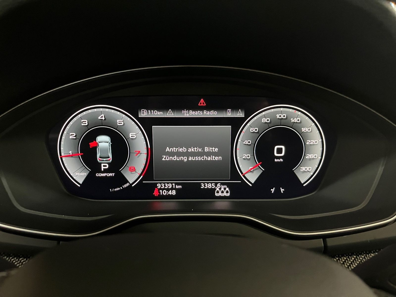» Audi virtual cockpit plus» Bang & Olufsen Premium Soundsystem mit 3D Klang » Head-up-Display» Panorama-Glasdach Assistenzsysteme: » Audi pre sense city» Kamerabasierte Verkehrszeichenerkennung» Reifendruck-Kontrollanzeige» Spurverlassenswarnung Multimedia: » Audi connect Navigation & Infotainment» Digitaler Radioempfang» MMI Navigation plus mit MMI touch» Smartphone-Interface Technik & Sicherheit: » 3-Zonen-Komfortklimaautomatik» Airbags vorn, Beifahrerairbag deaktivierbar» Audi connect Notruf & Service mit Audi connect Remote & Control» Audi drive select» Außenspiegel elektrisch einstell-, beheiz- und anklappbar, beidseitig automatisch abblendend» Kindersicherheits-Paket» Kindersitzbefestigung ISOFIX für den Beifahrersitz» Kindersitzbefestigung ISOFIX und Top Tether für die äußeren Fondsitze» Komfortschlüssel mit sensorgesteuerter Gepäckraumentriegelung inklusive Diebstahlwarnanlage» Komfortschlüssel, mit Safelock» Matrix LED-Scheinwerfer, OLED-Heckleuchten mit spezifischer Schlusslichtsignatur 1 und Scheinwerfer-Reinigungsanlage» OLED-Heckleuchten mit spezifischer Schlusslichtsignatur 1» Pedalerie und Fußstütze aus Edelstahl» S tronic (für Allrad)» Scheinwerfer-Reinigungsanlage» Seitenairbags vorn und Kopfairbagsystem» Start-Stop-System» Tagfahrlicht» Tiptronic Interieur: » Einstiegsleisten mit Aluminiumeinlegern vorn, beleuchtet, S-Schriftzug» Fahrersitz elektrisch einstellbar» Frontscheibe in Klimakomfort- und Akustikverglasung drahtlos beheizbar» Innenspiegel automatisch abblendend, rahmenlos» Interieur S line» Komfortmittelarmlehne vorn» Leder Feinnappa mit S-Prägung » Rücksitzbank plus» Sitzheizung vorn» Sportkontur-Lederlenkrad, 3-Speichen, unten abgeflacht mit Multifunktion plus» Standheizung und -lüftung Exterieur: » Anhängevorrichtung » Gepäckraumklappe elektrisch öffnend und schließend» Optikpaket schwarz plus» Sonnenschutzverglasung abgedunkelt Sonstiges: » 4 Zyl.Ottomotor 2,0L Aggr. 06N.D» Ambiente-Lichtpaket plus» Kindersicherung elektrisch betätigt» Stoßfänger S line in Kontrastlackierung» quattro mit ultra Technologie» variable Kopfstützen für die Vordersitze Audi Connect je nach Dienst zeitlich begrenzt, danach kostenpflichtig verlängerbar, Angaben zum Hersteller: AUDI AG, Audi, Auto-Union-Straße 1, 85057 Ingolstadt, Deutschland, +49-841-89-0, kundenbetreuung(at)audi.de, Produktinformationen: https://www.audi.de/de/rechtliches/gpsr/ Die angegebenen Verbrauchsangaben beziehen sich auf WLTP-Werte. Zwischenverkauf und Irrtümer für dieses Angebot sind ausdrücklich vorbehalten. Ausschlaggebend sind einzig und allein die Vereinbarungen in der Auftragsbestätigung oder im Kaufvertrag. Den genauen Ausstattungsumfang, die genauen Kilometer und den Verkaufspreis erhalten Sie von unserem Verkaufspersonal. Bitte kontaktieren Sie uns. Finanzierung
