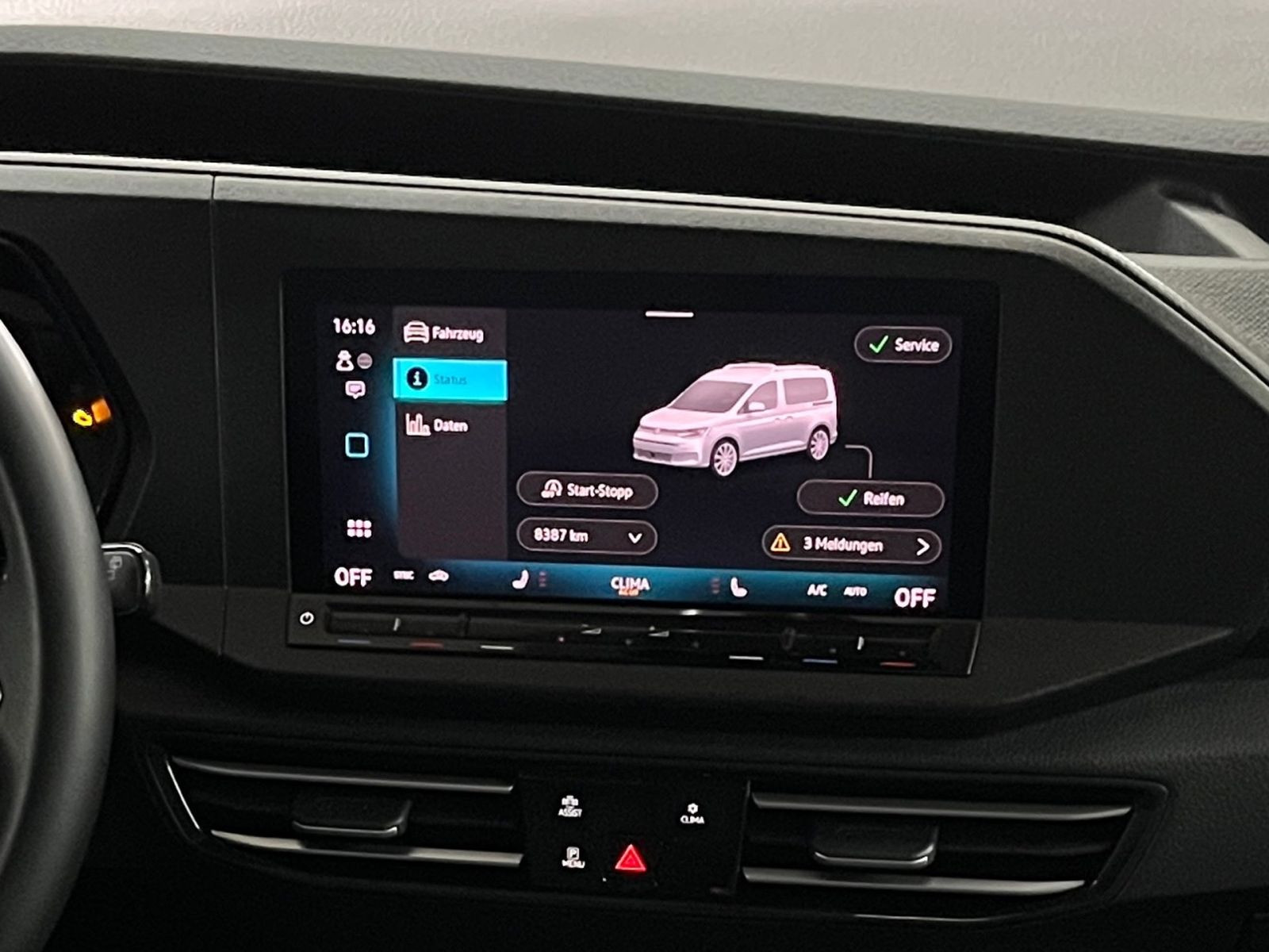 » Digital Cockpit Pro Assistenzsysteme: » Fahrlichtschaltung automatisch, mit Tagfahrlicht sowie Begrüßungs- und Verabschiedungslicht» Scheibenwischer-Intervallschaltung mit Licht- und Regensensor» Fahrassistenz-System: Anhänger-Stabilisierungs-Programm» Seitenscheiben vorn in Wärmeschutzglas, Seitenscheiben hinten und Heckscheibe abgedunkelt, zu 74 % lichtabsorbierend» Fernlichtregulierung Light Assist» Verkehrszeichenerkennung» Reifenkontrollanzeige (nach EU Typprüfung)» Geschwindigkeitsregelanlage» Anti-Blockier-System (ABS)» Parkbremse elektrisch mit Auto-Hold-Funktion» Notbremsassistent Front Assist mit Fußgänger- und Radfahrererkennung» Spurhalteassistent Lane Assist» Ablenkungs- und Müdigkeitserkennung» Elektron. Stabilitäts-Programm (ESP) Bremsassistent, ASR/ABS, EDS, MSR Multimedia: » Sprachassistent IDA und elektronische Sprachverstärkung» Mobiltelefonanbindung über Bluetooth mit induktiver Ladefunktion und Außenantennenanbindung» Navigationssystem Discover Media mit 10 Touch-Farbdisplay» Radio Ready to Discover mit 10 Touch- Farbdisplay, mit Vorbereitung Navigationssystem» Navigationssystem» Cool & Sound Paket» Digitaler Radioempfang (DAB+)» Extern, USB Typ-C Datenbuchse(n) und Ladebuchse(n) mit erhöhter Ladeleistung Technik & Sicherheit: » Winterpaket Basis und Standheizung» Leichtmetall-Reserverad mit Fahrbereifung inkl. Bordwerkzeug und Wagenheber» LED-Rückleuchten» Diebstahl-Alarmanlage mit Innenraumüberwachung, Back-up-Horn und Abschleppschutz» Zentralverriegelung mit schlüssellosem Startsystem Keyless Start und Safe-Sicherung» Klimaanlage , 2-Zonen Air Care Climatronic» Einparkhilfe im Front- und Heckbereich» Schließ-/Startsystem Keyless Access» Rückfahrkamera Rear View» Zulassung als PKW» Notrufsystem eCall, Voraussetzung: Verfügbarkeit benötigter Mobilfunknetze» Seiten- und Kopfairbag für Fahrer und Beifahrer, Kopfairbags für die äußeren Sitzplätze hinten und Mittenairbag vorn» Airbags für Fahrer und Beifahrer, mit Beifahrer-Airbag-Deaktivierung» Fensterheber elektrisch vorn» Zentralverriegelung» Sonnenblenden mit Spiegel, Airbag-Label auf Beifahrersonnenblende» Wegfahrsperre (elektronisch)» Kindersitzverankerung (I-Size) und Top Tether für Sitze im FGR (außer mittlerer Sitz der 2. Sitzreihe)» Servotronic (geschwindigkeitsabhängige Servolenkung)» Abgaskonzept, WLTP3 M1, N1-I//EU6EA» Start-Stopp-System mit Bremsenergie-Rückgewinnung Interieur: » Sitzbezüge in Stoff, Dessin Trialog» Sicherheitsinnenspiegel, automatisch abblendbar» Standheizung für Frontscheibenenteisung und Erwärmung(Lüftung nur in Verbindung mit Climatronic) mit Funkfernbedienung» Sitzheizung für Sitze im Fahrerhaus, links und rechts, getrennt regelbar» Multifunktionslenkrad in Leder (bei DSG mit Schaltwippen)» Mittelarmlehne vorn, höhen- und längsverstellbar mit 2 Getränkehaltern vorn und 2 Luftausströmern hinten» Gepäckraumabdeckung, auszieh- und herausnehmbar» Lendenwirbelstütze manuell einstellbar, links und rechts Exterieur: » LED-Leseleuchten im Fahrgastraum und LED-Heckklappenvorfeldbeleuchtung» Anhängevorrichtung, abnehm-/abschließbar (einschließlich Gespannstabilisierung)» Ganzjahresreifen 205/60 R16 96H XL Rollwiderstandsoptimiert» Dachreling, schwarz» elektrische Kindersicherung für die Schiebetüren» Schiebetür links im Lade-/Fahrgastraum» Schiebetür rechts im Lade-/Fahrgastraum» 4 Leichtmetallräder Wien 6,5 J x 16, Brilliantsilber» Kurzer Radstand Sonstiges: » Licht-und-Sicht-Paket» Scheibenwaschdüsen vorn, beheizbar» Waschwasserstand-Anzeige mit vergrößertem Waschwasserbehälter» Pure Grey» 2 12-Volt-Steckdosen, eine im Laderaum, eine in der Instrumententafel» Gepäck-Auffangnetz im Fahrgast-/Laderaum (2 Aufnahmepunkte beim Caddy bzw. 3 Aufnahmepunkte beim Caddy Maxi)» Sprachverstärkung elektronisch (Kommunikation innen)» Audiosystem: Vorbereitung für spätere Freischaltung Navigationsfunktion» Assistenzpaket» Getränkehalter vorn» Heckscheiben-Wischwaschanlage mit Intervallschaltung» Heckfenster, beheizbar Garantie 24 Monate ab Tag der Erstzulassung, Angaben zum Hersteller: Volkswagen AG, Volkswagen Nutzfahrzeuge, Mecklenheidestraße 74, 30419 Hannover, Deutschland, +49-5361-9-0, kundenbetreuung(at)volkswagen.de, Produktinformationen: https://www.volkswagen.de/idhub/content/dam/onehub_master/downloads/product-safety-cv/volkswagen-cv-sicherheitshinweise-de.pdf Die angegebenen Verbrauchsangaben beziehen sich auf WLTP-Werte. Zwischenverkauf und Irrtümer für dieses Angebot sind ausdrücklich vorbehalten. Ausschlaggebend sind einzig und allein die Vereinbarungen in der Auftragsbestätigung oder im Kaufvertrag. Den genauen Ausstattungsumfang, die genauen Kilometer und den Verkaufspreis erhalten Sie von unserem Verkaufspersonal. Bitte kontaktieren Sie uns. Finanzierung