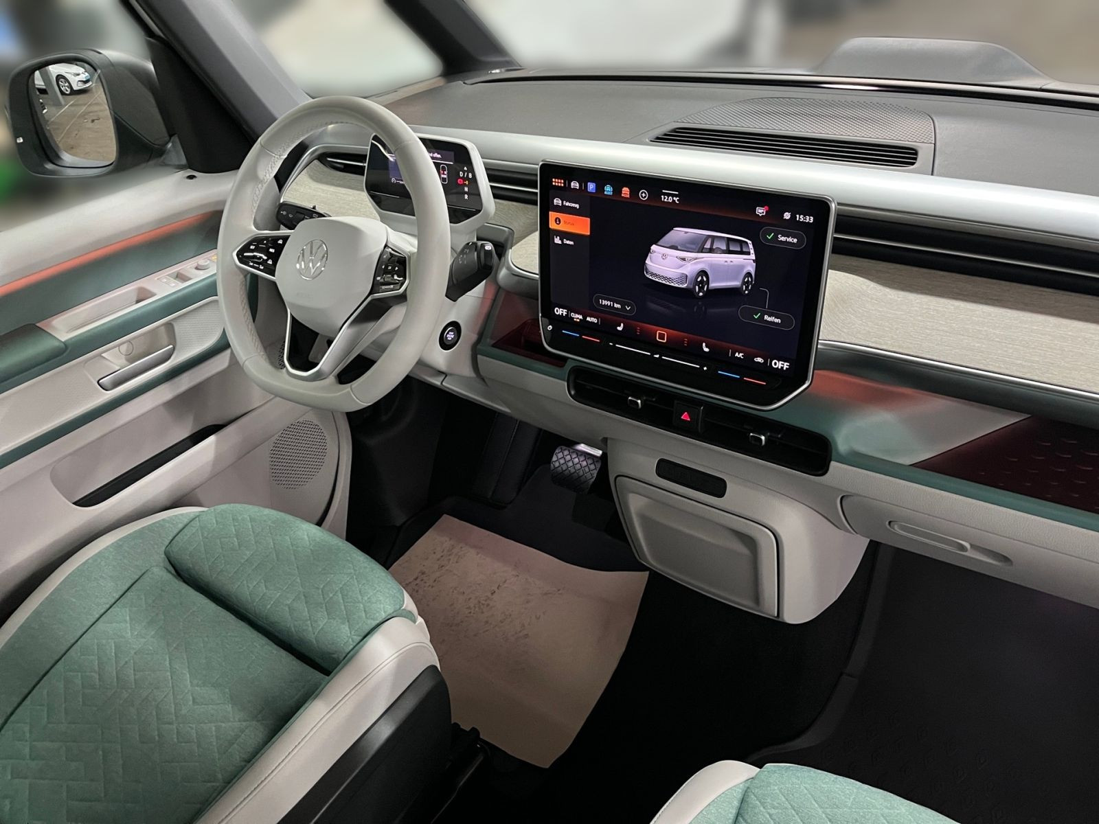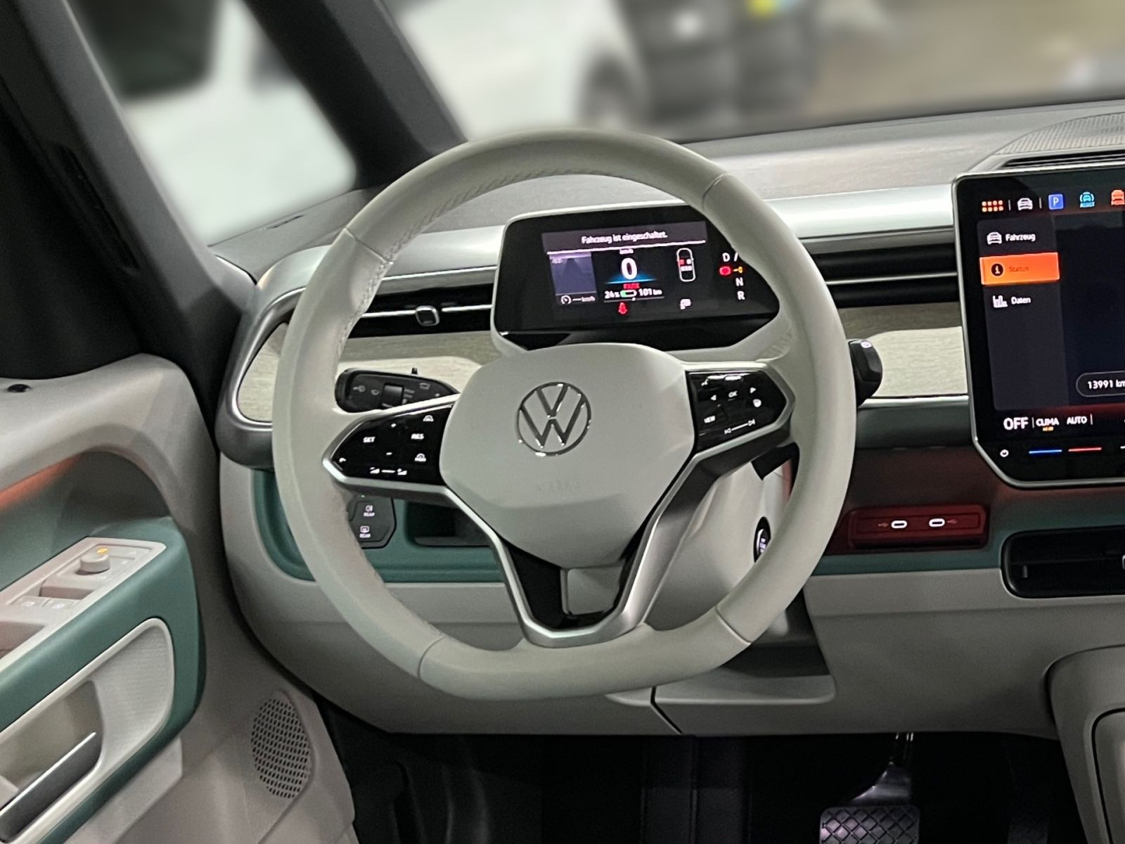 » Anhängevorrichtung anklappbar, mit elektrischer Entriegelung» Vordersitze mit Massagefunktion Assistenzsysteme: » Reifenkontrollanzeige» Intelligent Speed Assist inkl. Geschwindigkeitsbegrenzer» Geschwindigkeitsregelanlage in Verbindung mit Onlinediensten» Anti-Blockier-System (ABS)» Notbremsassistent Front Assist mit Fußgänger- und Radfahrererkennung» Verkehrszeichenerkennung» Ablenkungs- und Müdigkeitserkennung» Spurhalteassistent Lane Assist Multimedia: » Mobiltelefon-Schnittstelle Comfort mit induktiver Ladefunktion» Navigationssystem Discover Pro» Diversity-Antenne für FM-Empfang» Digitaler Radioempfang (DAB+)» Radio Ready 2 Discover mit 32,8 cm (12,9) Touch-Farbdisplay» 2 USB-C-Schnittstellen in der I-Tafel und 1 USB-C-Ladebuchse für Beifahrer, Ladeleistung bis zu 45 W» Mobiltelefon Schnittstelle Bluetooth» App-Connect inkl. App-Connect Wireless für Apple CarPlay und Android Auto Technik & Sicherheit: » Wärmepumpe Wärmepumpe» Bordwerkzeug, Wagenheber und Tire Mobility Set: 12-Volt-Kompressor und Reifendichtmittel» 3 Zonen Klimaanlage Air Care Climatronic mit Standklimatisierung und 2. Klimaanlage im Fahrgastraum» LED-Scheinwerfer» LED-Rückleuchten» Notrufsystem eCall, Voraussetzung: Verfügbarkeit benötigter Mobilfunknetze» Einparkhilfe - Warnsignale bei Hindernissen im Front- und Heckbereich» Airbags für Fahrer und Beifahrer, mit Beifahrerairbag-Deaktivierung» Seiten- und Kopfairbags für Fahrer und Beifahrer sowie Mittenairbag vorn» Zentralverriegelung mit schlüssellosem Startsystem Keyless Start, ohne Safesicherung» Wegfahrsperre elektronisch» e-Sound» Servolenkung elektromechanisch, geschwindigkeitsabhängig geregelt» CCS-Ladedose» Getriebe für Elektroantrieb ( 1-Gang ) Interieur: » Sitzheizung für Vordersitze sowie die äußeren Sitze der 2. Sitzreihe im Fahrgastraum, getrennt regelbar» Sitze im Fahrerhaus: Fahrer- und Beifahrersitz heizbar» Lendenwirbelstütze vorn pneumatisch einstellbar, mit Massagefunktion» Multifunktionslenkrad in Leder, mit Touch-Bedienung, beheizbar» Rücksitzbank-/lehne, geteilt, umlegbar Exterieur: » Candy-Weiß» Farbe Candy-Weiß» Schiebetür links» Schiebetür rechts» Kurzer Radstand Sonstiges: » Infotainment-Paket» Sprachassistent IDA» Netzladekabel für Haushalts-Steckdose (Mode 2 Typ 2, 10A)» Interieur Style Plus mit Lenkrad in Electric White» Einfassung der zentralen Bedienungselemente in Electric White» Sitzeinstellung, elektrisch, für beide Vordersitze mit Memory und Fahrerseite mit Smart Comfort Einstiegshilfe» Armlehnen für Vordersitze beidseitig» Ambientebeleuchtung 30-farbig» Rechtsverkehr Linkslenker» Außenspiegel elektrisch einstell- und beheizbar» Außenspiegelgehäuse in Schwarz und Türgriffe in Wagenfarbe» Leuchtweitenregulierung, manuell (statisch)» Wärmeschutzglas (grün)» 9 Lautsprecher (5 Lautsprecher vorn und 4 Lautsprecher hinten)» Vorbereitet für We Connect (Plus) oder VW Connect (Plus), Online-Update- Fähigkeit (außer für Sonderumbauten)» Innenraumfilter: Aktiv Kombifilter» ISOFIX und Top Tether auf den äußeren Rücksitzen und Beifahrersitz, I-Size für Beifahrersitz und äußere Sitze 2. SR» 5 Sitze» Sitze im Fahrerhaus: Beifahrereinzelsitz» Proaktives Insassenschutzsystem in Verbindung mit dem Front Assist» Innenbeleuchtung im Fußraum vorn und hinten» LED-Gepäckraumbeleuchtung» Sonnenblenden mit Spiegel, beleuchtet, mit Airbag-Label auf Sonnenblende und B-Säule» Betriebsspannung 12 Volt mit 12 Volt Steckdose im Laderaum» Multifunktionskamera» Bremsbelagverschleissanzeige» Ausweichunterstützung und Abbiegeassistent» Radvollblenden in BiColor (Schwarz/Silber)» HV-Batterie 79 kWh netto» Ladekabel Mode 3 Typ 2, 16A» Karosserie/Aufbau: Bus» Radstand 2989 mm» Heckantrieb» Elektromotor 210 kW (cont. 89 kW) Garantie 24 Monate ab Tag der Erstzulassung, Angaben zum Hersteller: Volkswagen AG, Volkswagen Nutzfahrzeuge, Mecklenheidestraße 74, 30419 Hannover, Deutschland, +49-5361-9-0, kundenbetreuung(at)volkswagen.de, Produktinformationen: https://www.volkswagen.de/idhub/content/dam/onehub_master/downloads/product-safety-cv/volkswagen-cv-sicherheitshinweise-de.pdf Die angegebenen Verbrauchsangaben beziehen sich auf WLTP-Werte. Zwischenverkauf und Irrtümer für dieses Angebot sind ausdrücklich vorbehalten. Ausschlaggebend sind einzig und allein die Vereinbarungen in der Auftragsbestätigung oder im Kaufvertrag. Den genauen Ausstattungsumfang, die genauen Kilometer und den Verkaufspreis erhalten Sie von unserem Verkaufspersonal. Bitte kontaktieren Sie uns. Finanzierung