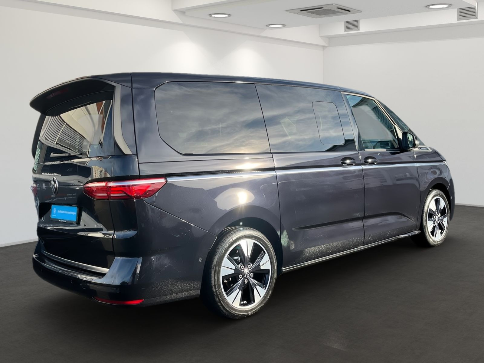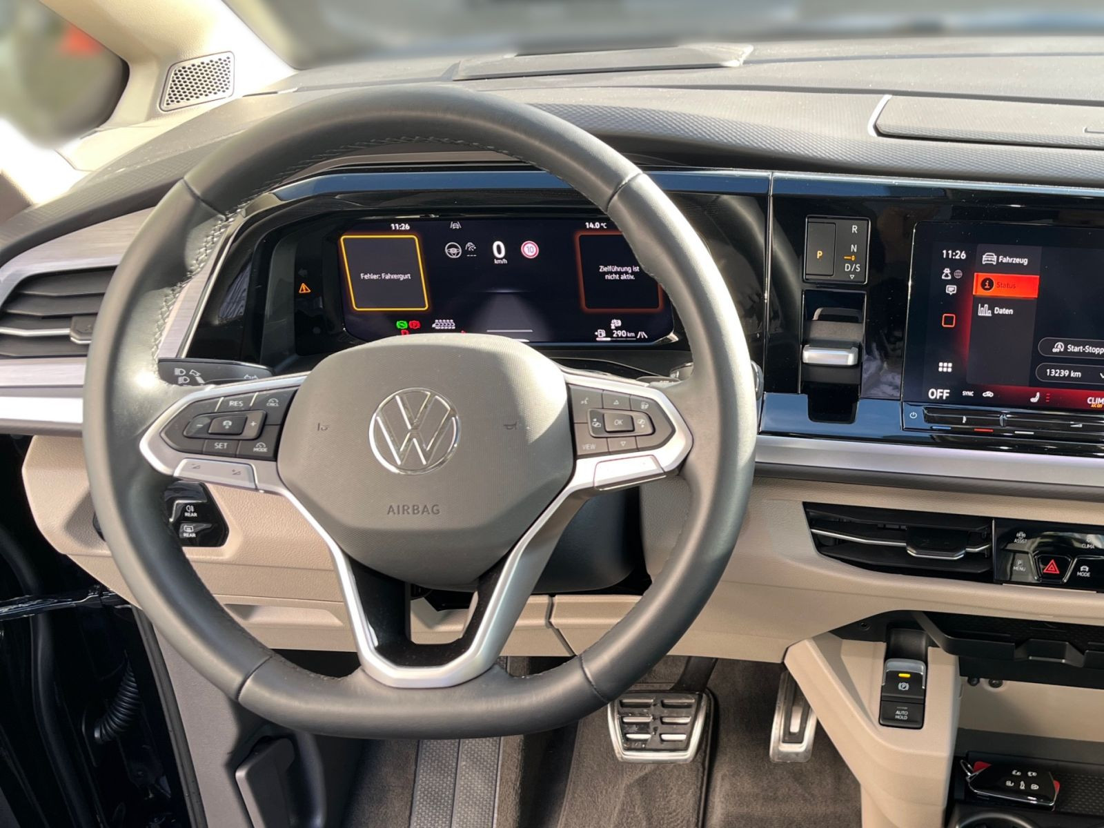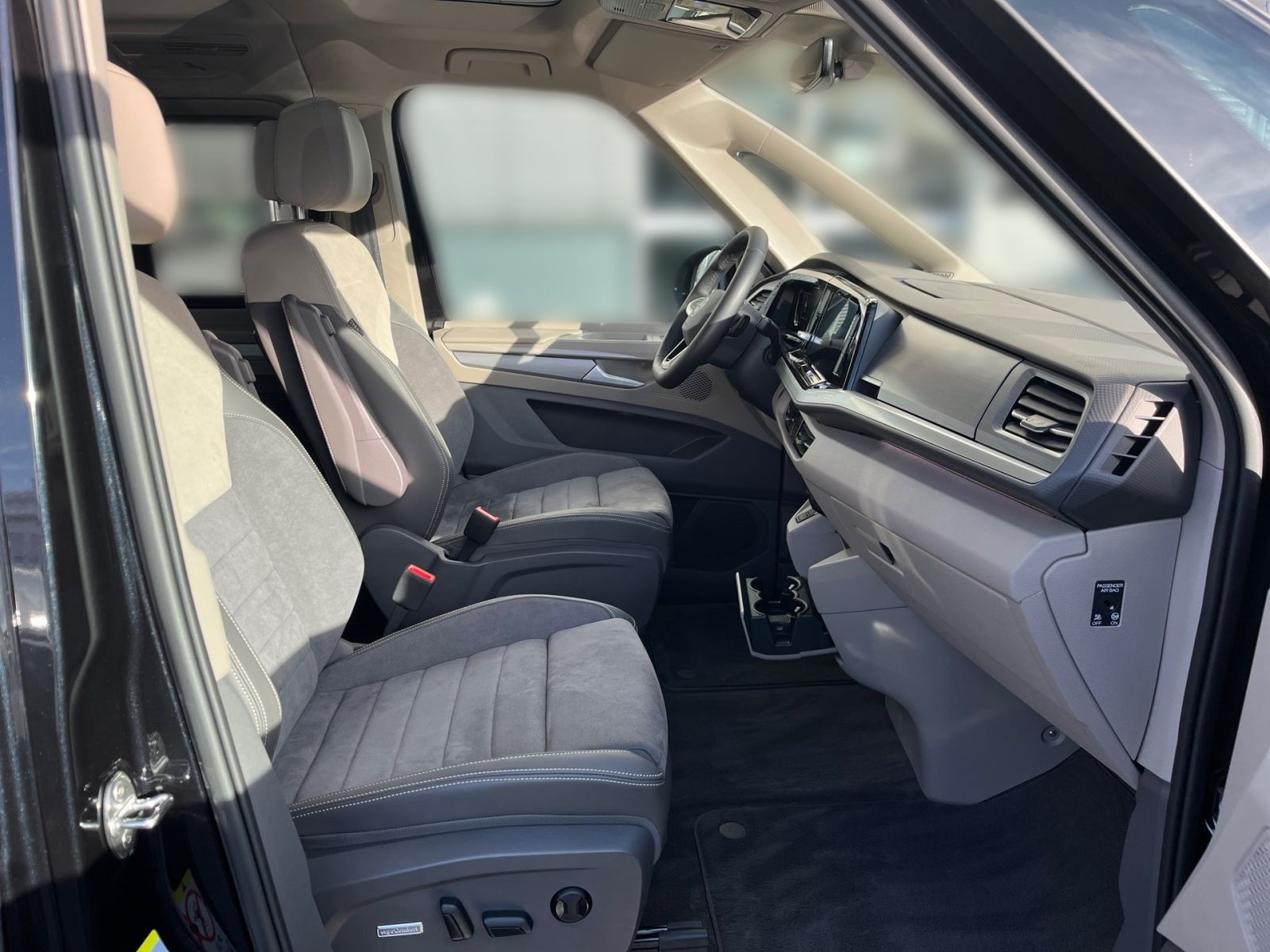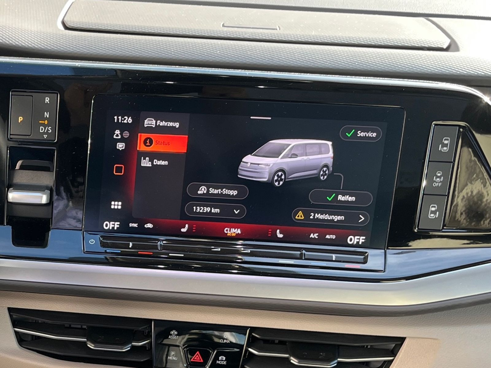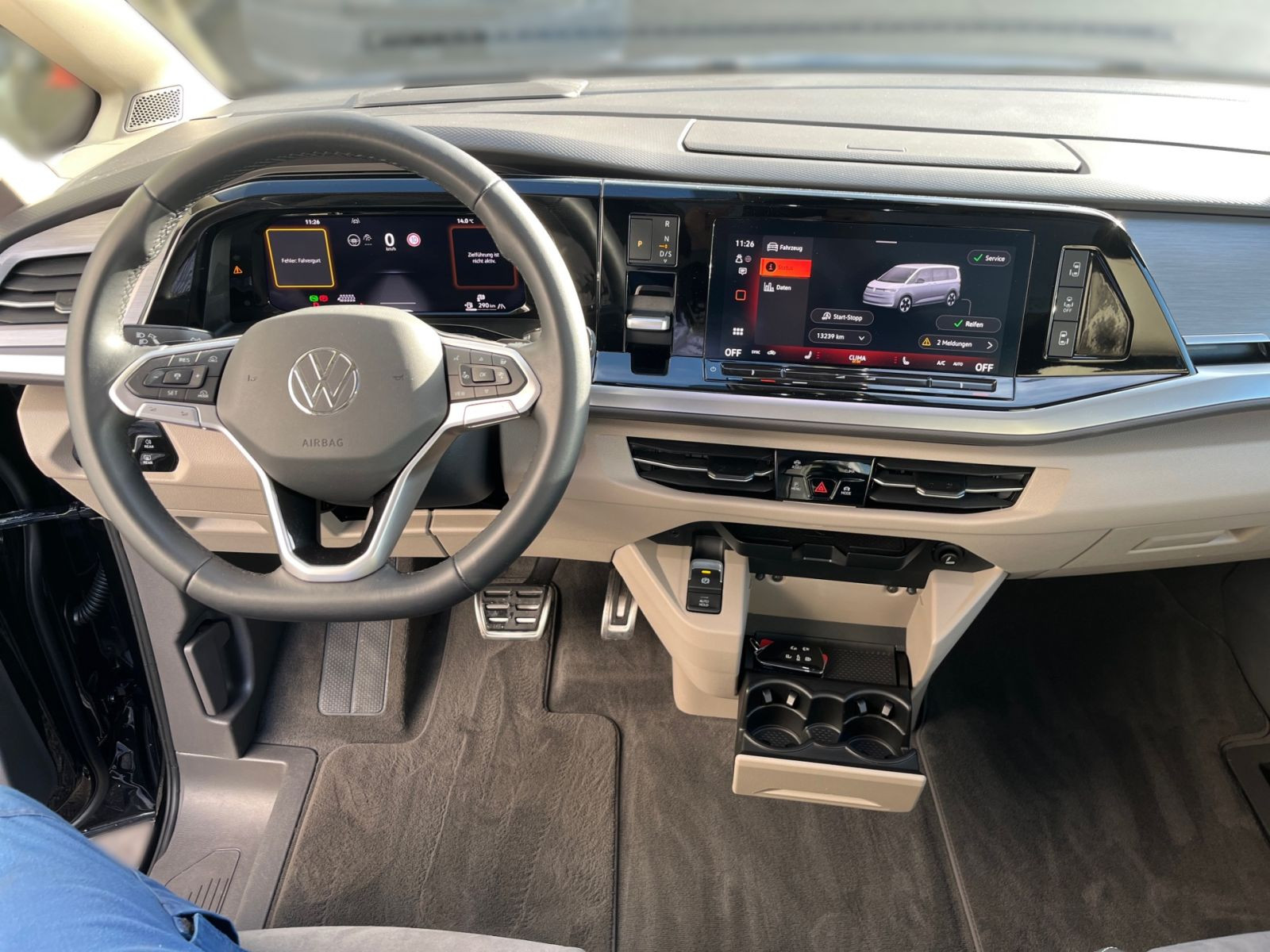 » Assistenzpaket Advanced» Fahrerassistent Travel Assist inklusive Spurhalteassistent Lane Assist und Emergency Assist» Spurwechselassistent Side Assist inklusive Blind Spot Detection, Ausparkassistent und Ausstiegswarner» Automatische Distanzregelung ACC stop & go» Fahrprofilauswahl für DCC» Tagfahrlichtschaltung mit Assistenzfahrlicht sowie Coming home und Leaving home-Funktion» Dynamische Fernlichtregulierung Dynamic Light Assist für LED-Matrix-Scheinwerfer» Schlechtwetterlicht (inklusive Abbiegelicht)» Scheibenwischer-Intervallschaltung mit Regensensor für die Frontscheibenwischer» Reifenkontrollanzeige (nach EU Typprüfung)» Geschwindigkeits-Regelanlage» Geschwindigkeitsbegrenzer und Intelligent Speed Assist» Anti-Blockier-System (ABS)» Fahrassistenz-System: Bremsassistent (HBA)» Notbremsassistent Front Assist mit Fußgänger- und Radfahrererkennung» Verkehrszeichenerkennung» Ablenkungs- und Müdigkeitserkennung Multimedia: » Mobiltelefon-Schnittstelle Comfort mit induktiver Ladefunktion» Navigationssystem Discover Pro mit 25,4 cm (10) Touch-Farbdisplay inklusive Streaming & Internet» Digitaler Radioempfang» 8 Lautsprecher ( passiv )» Sprachassistent IDA und elektronische Sprachverstärkung» 2 USB-C-Schnittstellen vorn, 4 USB-C-Ladebuchsen im Fahrgastraum» App-Connect inklusive App-Connect Wireless für Apple CarPlay und Android Auto Technik & Sicherheit: » Raucherausführung: Zigarettenanzünder und Wanderaschenbecher» Anhängevorrichtung mit Anhängerrangierassistent und Parklenkassistent Trailer/Parkassist» 2 Einzelsitze in Fahrtrichtung in der 2. Sitzreihe» Außenspiegel elektr. verstell-, heiz- und anklappbar» Außenspiegelgehäuse in Schwarz hochglanz» IQ.LIGHT-LED-Matrix-Scheinwerfer mit LED-Tagfahrlicht» LED-Rückleuchten» Notrufsystem eCall, Voraussetzung: Verfügbarkeit benötigter Mobilfunknetze» Parklenkassistent Park Assist und Einparkhilfe im Front- und Heckbereich» Airbags für Fahrer und Beifahrer, mit Beifahrer-Airbag-Deaktivierung» Seiten- und Kopfairbag für Fahrer und Beifahrer, Kopfairbags für die äußeren Sitzplätze hinten und Mittenairbag vorn» 3-Zonen Klimaanlage Air Care Climatronic mit zusätzlichem Bedienteil im Fahrgastraum (nicht beim Beach)» Isofix-Aufnahmen für Kindersitz an Rücksitz» Fensterheber elektrisch vorn» Zentralverriegelung mit schlüssellosem Startsystem Keyless Start, mit Safesicherung» Sonnenblenden mit Spiegel, beleuchtet, Tickethalter auf der Fahrerseite, mit Airbaglabel auf Sonnenblende und B-Säule» Diebstahl-Alarmanlage mit Innenraumüberwachung, Back-up-Horn und Abschleppschutz» Rückfahrkamera Rear View» Servolenkung, geschwindigkeitsabhängig (Servotronic)» Abgaskonzept, WLTP3 M1, N1-I//EU6EA» Start/Stop-Anlage Motor Interieur: » AGR ErgoComfort Sitze vorne, ArtVelours, elektr. verstellbar, nur für Fahrer mit Memory - & Massagefunktion» Sitzheizung für beide Sitze im Fahrerhaus und die äußeren Sitze des Fahrgastraums (getrennt regelbar)» Standheizung für Frontscheibenenteisung und Erwärmung/Lüftung des Fahrerhauses mit Funkfernbedienung» Multifunktions-Lederlenkrad mit Schaltwippen, beheizbar» 3 Einzelsitze in der 3. Sitzreihe» Audiosystem Ready 2 Discover (Touchscreen-Farbdisplay 10, inkl. Streaming & Internet)» Armlehnen für Fahrer- und Beifahrersitz, beidseitig, mit elektrischer Lendenwirbelstütze und Klapptisch» 2 Vorbereitungen für Armlehnen innenseitig in der 3. Sitzreihe» Sicherheitsinnenspiegel, automatisch abblendend Exterieur: » Deep Black Perleffekt» 4 Leichtmetallräder Halmstad 8J x 19, in Schwarz, Oberfläche glanzgedreht Leichtmetallräder Halmstad 8J x 19, in Schwarz, Oberfläche glanzgedreht» Schiebefenster in der Schiebetür links und rechts , inklusive Privacy Verglasung im Fond» Scheiben im Fond abgedunkelt» Schiebefenster in der Schiebetür, links» Schiebefenster in der Schiebetür, rechts» Farbe Deep Black Perleffekt» Schiebetür links, elektrisch» Schiebetür rechts, elektrisch» Umfeldbeleuchtung Heckklappe Garantie 24 Monate ab Tag der Erstzulassung, Angaben zum Hersteller: Volkswagen AG, Volkswagen Nutzfahrzeuge, Mecklenheidestraße 74, 30419 Hannover, Deutschland, +49-5361-9-0, kundenbetreuung(at)volkswagen.de, Produktinformationen: https://www.volkswagen.de/idhub/content/dam/onehub_master/downloads/product-safety-cv/volkswagen-cv-sicherheitshinweise-de.pdf Die angegebenen Verbrauchsangaben beziehen sich auf WLTP-Werte. Zwischenverkauf und Irrtümer für dieses Angebot sind ausdrücklich vorbehalten. Ausschlaggebend sind einzig und allein die Vereinbarungen in der Auftragsbestätigung oder im Kaufvertrag. Den genauen Ausstattungsumfang, die genauen Kilometer und den Verkaufspreis erhalten Sie von unserem Verkaufspersonal. Bitte kontaktieren Sie uns. Finanzierung