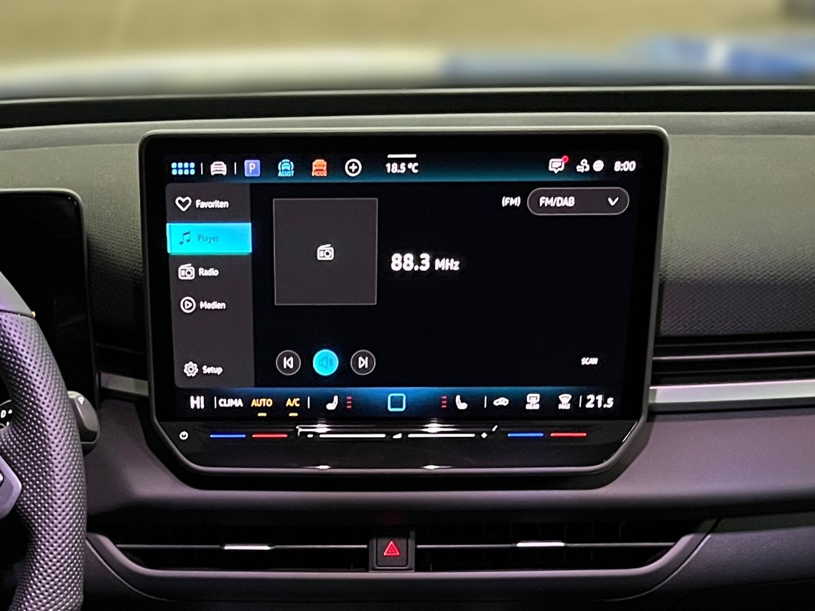 » Elektronisches Stabilisierungsprogramm und elektromechanischer Bremskraftverstärker» Spurwechselassistent Side Assist, Ausparkassistent und Ausstiegswarnung» Reifenkontrollanzeige» Notbremsassistent Front Assist mit Fußgänger- und Radfahrererkennung» Regensensor» Automatische Distanzregelung ACC» Ablenkungs- und Müdigkeitserkennung» Geschwindigkeitsbegrenzer mit vorausschauender Regelung» Mit Multifunktionskamera» Verkehrszeichenerkennung» Berganfahrassistent Multimedia: » Diversity-Antenne für FM-Empfang» App-Connect Wireless für Apple CarPlay und Android Auto» Telefonschnittstelle Comfort mit induktiver Ladefunktion» Digitaler Radioempfang DAB+ Technik & Sicherheit: » Parkpaket» Tire Mobility Set: 12-Volt-Kompressor und Reifendichtmittel» Sportfahrwerk» Progressivlenkung» Stoßfänger im R-Line-Styling» ISOFIX-Halteösen für Kindersitze auf den äußeren Rücksitzen sowie auf dem Beifahrersitz, i-Size-kompatibel» Fensterheber elektrisch» Airbag für Fahrer und Beifahrer, mit Beifahrerairbag-Deaktivierung» Abgaskonzept, WLTP3 M1, N1-I//EU6EB» Kopfairbags vorn und hinten, Seitenairbags vorn, Center-Airbag» Außenspiegel elektrisch einstell-, anklapp- und beheizbar, mit Beifahrerspiegelabsenkung» Diebstahlwarnanlage mit Innenraumüberwachung, Back-up-Horn und Abschleppschutz» Start-Stopp-System mit Bremsenergie-Rückgewinnung» Fahrlichtschaltung automatisch, mit LED-Tagfahrlicht sowie Coming homeund Leaving home-Funktion» 7-Gang-Automatikgetriebe oder DSG Beachtung» Klimaanlage Air Care Climatronic mit Aktiv-Kombifilter, Bedienelementen hinten und 3-Zonen-Temperaturregelung» Notruf-Service, Laufzeit 10 Jahre ab Erstauslieferung, Voraussetzung: Verfügbarkeit benötigter Mobilfunknetze Interieur: » Multifunktions-Sportlenkrad in Leder, beheizbar, mit Schaltwippen» Vordersitze beheizbar» Innenspiegel automatisch abblendend» Mittelarmlehne vorn» Lendenwirbelstützen vorn pneumatisch einstellbar» Sitzmittelbahnen der Vordersitze und der äußeren Rücksitzplätze in Stoff R-Line» Sport-Komfortsitze vorn Exterieur: » Easy Open & Close - Heckklappe mit sensorgesteuerter Öffnung und Schließung, mit Fernentriegelung» Seitenscheiben hinten und Heckscheibe abgedunkelt» R-Line Sonstiges: » Technikpaket IQ.Drive» Lichtpaket IQ.LIGHT» Infotainment-Paket Discover» Design-Paket Black Style» ME Variante 3» 45489» FD8219» ÜF» Farbe Celestial Blue Metallic» Hybrid-Antriebssystem MHEV» Fahrprofilauswahl» Gepäckraumboden in 2 Höhen einstellbar, für ebene Ladefläche» Vordersitze mit Höheneinstellung» Rücksitzbank ungeteilt, Lehne asymmetrisch umklappbar, mit Mittelarmlehne» Abbiegebremsfunktion und Ausweichunterstützung» Fahrzeugklassen-Differenzierung -3GA» Dachhimmel schwarz» Leuchte im Fußraum vorn» Einstiegsleisten vorn in Aluminium» Dekor-Set» 12-V-Steckdose im Gepäckraum» Ländercluster WLTP EU-Genehmigung» Standard-Ausführung» Batterie 380A (59Ah) EFB+» Sondermaßnahme A (Ausführung 2)» Sondermaßnahme B (Ausführung 1)» Sondermaßnahme C (Ausführung 1)» Sondermaßnahme D (Ausführung 1)» 4 Zyl.Ottomotor 1,5L Aggr. 05E.D» Chrom-Applikationen an Ausströmern, Spiegeleinstell- und Fensterheberschaltern» Ambientebeleuchtung 30-farbig, Dekore in den Türen vorn durchleuchtet» 2 USB-C-Schnittstellen vorn, 2 USB-C-Ladebuchsen an der Mittelkonsole hinten, Ladeleistung bis zu 60 W» Elektronische Parkbremse inkl. Auto-Hold-Funktion» Pedale in Edelstahl gebürstet Garantie 24 Monate ab Tag der Erstzulassung, Angaben zum Hersteller: Volkswagen AG, Volkswagen, Berliner Ring 2, 38440 Wolfsburg, Deutschland, +49-5361-9-0, kundenbetreuung(at)volkswagen.de, Produktinformationen: https://www.volkswagen.de/idhub/content/dam/onehub_master/downloads/product-safety/volkswagen-sicherheitshinweise-de.pdf Die angegebenen Verbrauchsangaben beziehen sich auf WLTP-Werte. Zwischenverkauf und Irrtümer für dieses Angebot sind ausdrücklich vorbehalten. Ausschlaggebend sind einzig und allein die Vereinbarungen in der Auftragsbestätigung oder im Kaufvertrag. Den genauen Ausstattungsumfang, die genauen Kilometer und den Verkaufspreis erhalten Sie von unserem Verkaufspersonal. Bitte kontaktieren Sie uns. Finanzierung