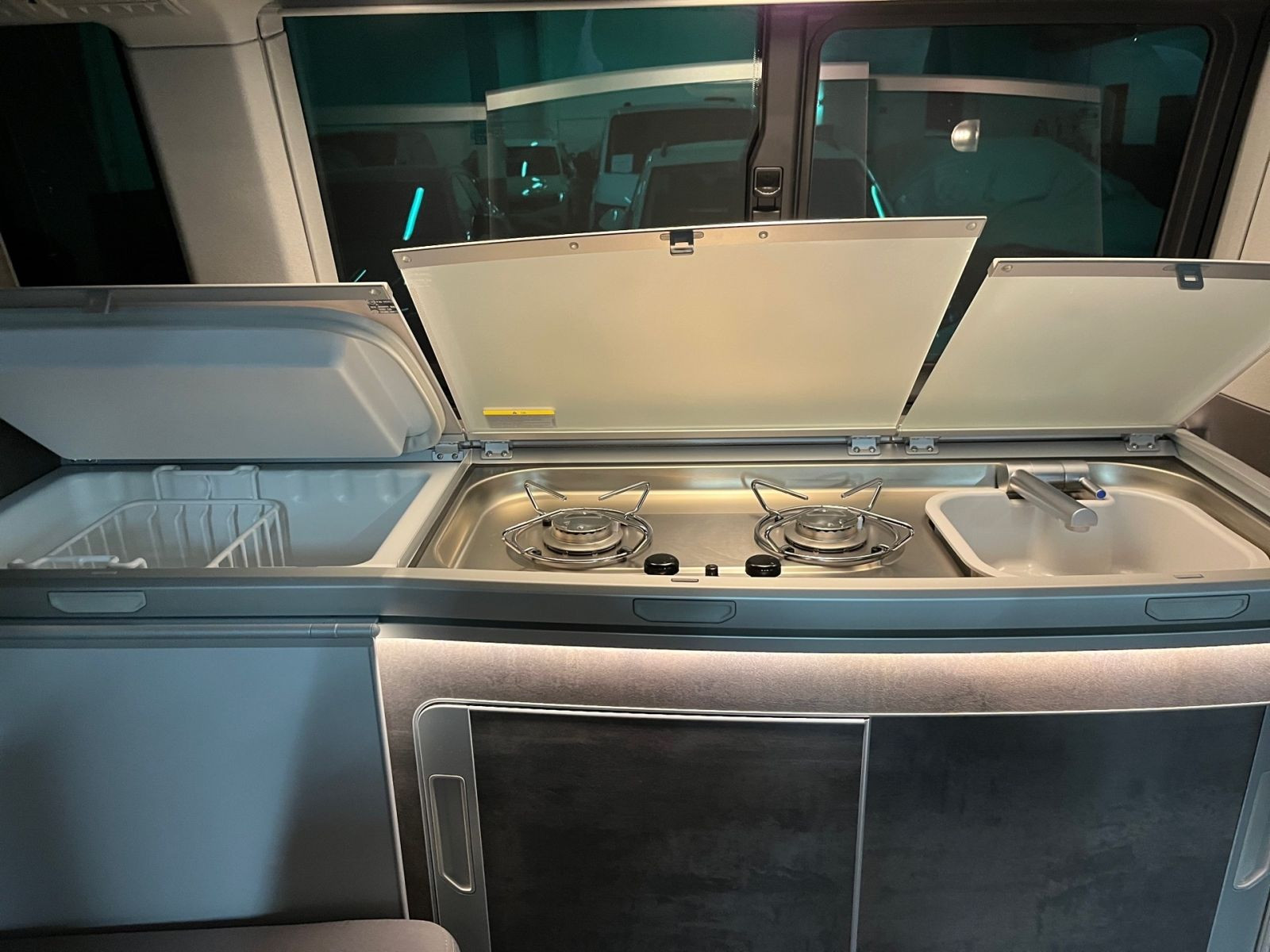 » Berganfahrassistent» Fernlichtregulierung Light Assist» Müdigkeitserkennung» Verkehrszeichenerkennung» Fahrassistenz-System: Parklenkassistent (Park Assist) inkl. Einparkhilfe mit aktivem Flankenschutz» Reifendruck-Kontrollsystem (direkt messend)» Anhänger-Stabilisierungs-Programm» Digital Cockpit und Müdigkeitserkennung» Fahrprofilauswahl Drive Select und adaptive Fahrwerksregelung DCC mit Dynamikfahrwerk» Dynamik-Fahrwerk» Adaptive Fahrwerksregelung (DCC) mit Dynamik-Fahrwerk Multimedia: » Sprachbedienung» Mobiltelefon-Schnittstelle Comfort mit induktiver Ladefunktion» Navigationssystem Discover Media inklusive Streaming & Internet» Wired & Wireless App-Connect» Digitaler Radioempfang (DAB+)» 2 USB-Schnittstellen (Typ C) in der Armaturentafel Technik & Sicherheit: » Rückfahrkamera» Anhängerrangierassistent mit ParkPilot, Parklenkassistent, Flankenschutz und Rückfahrkamera (dynamische Linien)» Diebstahl-Alarmanlage mit Innenraumüberwachung im Fahrerhaus, Back-up-Horn und Abschleppschutz Diebstahl-Alarmanlage mit Innenraum- überwachung im Fahrerhaus, Back-up-Horn und Abschleppschutz» Zentralverriegelung mit Funkfernbedienung, Innenbetätigung und Safesicherung» Außenspiegel, elektrisch einstell-, beheiz- und anklappbar, inklusive Anklappfunktion über Fahrzeugschlüssel» Tagfahrlicht mit Fahrlichtschaltung (automatisch), Leaving home-Funktion und manueller Coming home-Funktion» Tagfahrlicht LED» LED-Hauptscheinwerfer mit LED-Tagfahrlicht» Nebelscheinwerfer inkl. Abbiegelicht» LED-Rückleuchten, rot» Notrufsystem eCall» Airbags für Fahrer und Beifahrer, mit Beifahrer-Airbag-Deaktivierung» Seiten- und Curtainairbag für Fahrer und Beifahrer» Velour-Vlies-Bodenbelag im Fahrerhaus» 3-Zonen Klimaanlage Air Care Climatronic mit zusätzlichem Bedienteil im Fahrgastraum» Kindersitzverankerung ISOFIX und Top Tether für Multivan/California in der 2. bis 4.Sitzreihe» Fensterheber elektrisch» 2 Funkklappschlüssel» Sonnenblenden mit Spiegel, beleuchtet, sowie Airbag-Label auf der Beifahrersonnenblende» Wegfahrsperre (elektronisch)» Servolenkung elektromechanisch, geschwindigkeitsabhängig geregelt, Lenksäule höhen- und längenverstellbar» Start-Stopp-System mit Bremsenergie-Rückgewinnung» 7-Gang-Automatikgetriebe inklusive Freilauffunktion Interieur: » Sitzbezüge in Stoff, Dessin Circuit» Verbundglas-Frontscheibe in Dämmglas, beheizbar» Sicherheitsinnenspiegel, automatisch abblendend» Sitze im Fahrerhaus: Lendenwirbelstütze Fahrersitz» Sitze im Fahrerhaus: Lendenwirbelstütze Beifahrersitz» Sitze im Fahrerhaus: Armlehnen, Fahrersitz» Sitze im Fahrerhaus: Armlehnen, Beifahrersitz» Raucherausführung: mit Zigarettenanzünder und Aschenbecher in der Armaturentafel» Sonnenschutzrollo im Fahrgastraum» Standheizung für Fahrerhaus und Laderaum mit Funkfernbedienung und kraftstoffbetriebene Zusatzheizung» Sitzheizung für Sitze im Fahrerhaus, links und rechts, getrennt regelbar» Lendenwirbelstützen für linken und rechten Einzelsitz in der 1.Sitzreihe (beide manuell einstellbar)» Armlehnen für beide Sitze im Fahrerhaus» 2er-Camper Sitz-/Liegebank, verschieb- und umklappbar zu zwei Schlafplätzen, in der 3. Sitzreihe» Innenleuchtenkonzept Camper mit Beleuchtung im Aufstelldach, Heckklappe, und bei Coast/Ocean am Küchengeschränk» Kompressorkühlbox Waeco (ca. 42 l), Klassifizierung nach DIN EN 62552» Multifunktions-Lederlenkrad (3 Speichen) Exterieur: » Markise in Schwarz (Gehäuse und Schiene)» 4 Leichtmetallräder Posada 7J x 17, in Schwarz, Oberfläche glanzgedreht Leichtmetallräder Posada 7 J x 17 in Schwarz, Oberfläche glanzgedreht» Leichtmetall-Reserverad mit Fahrbereifung» Schiebetür rechts, im Lade-/Fahrgastraum, elektrisch» Befestigungsschienen auf dem Dach (Vorbereitung für verschiebbare Dachlastträger)» Heckklappe mit Fensterausschnitt und Zuziehhilfe» Abdeckung Schiebetürleiste» Schiebetür Lade-/Fahrgastraum rechts» Campingtisch für Innen und Außen (in der Schiebetür) und 2 Klappstühle (in der Heckklappe)» Kurzer Radstand Angaben zum Hersteller: Volkswagen AG, Volkswagen Nutzfahrzeuge, Mecklenheidestraße 74, 30419 Hannover, Deutschland, +49-5361-9-0, kundenbetreuung(at)volkswagen.de, Produktinformationen: https://www.volkswagen.de/idhub/content/dam/onehub_master/downloads/product-safety-cv/volkswagen-cv-sicherheitshinweise-de.pdf Die angegebenen Verbrauchsangaben beziehen sich auf WLTP-Werte. Zwischenverkauf und Irrtümer für dieses Angebot sind ausdrücklich vorbehalten. Ausschlaggebend sind einzig und allein die Vereinbarungen in der Auftragsbestätigung oder im Kaufvertrag. Den genauen Ausstattungsumfang, die genauen Kilometer und den Verkaufspreis erhalten Sie von unserem Verkaufspersonal. Bitte kontaktieren Sie uns. Finanzierung