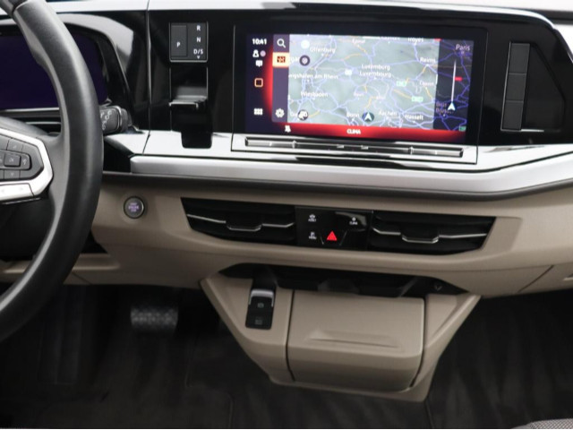» Digital Cockpit Pro» Panoramaglasdach, abgedunkelt, zweiteilig Assistenzsysteme: » Proaktives Insassenschutzsystem» Assistenzpaket Advanced» Fahrerassistent Travel Assist inklusive Spurhalteassistent Lane Assist und Emergency Assist» Spurwechselassistent Side Assist inklusive Blind Spot Detection, Ausparkassistent und Ausstiegswarner» Automatische Distanzregelung ACC stop & go» Dynamische Fernlichtregulierung Dynamic Light Assist für LED-Matrix-Scheinwerfer» Schlechtwetterlicht (inklusive Abbiegelicht)» Anti-Blockier-System (ABS)» Fahrassistenz-System: Bremsassistent (HBA)» Notbremsassistent Front Assist mit Fußgänger- und Radfahrererkennung» Verkehrszeichenerkennung» Ablenkungs- und Müdigkeitserkennung» Elektronisches Stabilisierungsprogramm und elektromechanischer Bremskraftverstärker» Tagfahrlichtschaltung mit Assistenzfahrlicht sowie Coming home und Leaving home-Funktion» Scheibenwischer-Intervallschaltung mit Regensensor für die Frontscheibenwischer» Geschwindigkeits-Regelanlage (Tempomat)» Reifenkontrollanzeige (nach EU Typprüfung)» Geschwindigkeitsbegrenzer und Intelligent Speed Assist Multimedia: » Mobiltelefon-Schnittstelle Comfort mit induktiver Ladefunktion» Navigationssystem Discover Pro mit 25,4 cm (10) Touch-Farbdisplay inklusive Streaming & Internet» Sprachsteuerungs-System» Digitaler Radioempfang» 8 Lautsprecher ( passiv )» 2 USB-C-Schnittstellen vorn, 4 USB-C-Ladebuchsen im Fahrgastraum» App-Connect inklusive App-Connect Wireless für Apple CarPlay und Android Auto Technik & Sicherheit: » Parklenkassistent Park Assist und Einparkhilfe im Front- und Heckbereich» Rückfahrkamera Rear View» Bordwerkzeug, Wagenheber und Tire Mobility Set (in den Staufächern im Gepäckraum)» Diebstahl-Alarmanlage mit Innenraumüberwachung, Back-up-Horn und Abschleppschutz» Zentralverriegelung mit schlüssellosem Schließ- und Startsystem Keyless Advanced ohne Safesicherung» Top Paket» IQ.LIGHT-LED-Matrix-Scheinwerfer mit LED-Tagfahrlicht» LED-Rückleuchten, abgedunkelt» 3-Zonen Klimaanlage Air Care Climatronic mit zusätzlichem Bedienteil im Fahrgastraum (nicht beim Beach)» Fensterheber elektrisch vorn» Sonnenblenden mit Spiegel, beleuchtet, Tickethalter auf der Fahrerseite, mit Airbaglabel auf Sonnenblende und B-Säule» Wegfahrsperre (elektronisch)» Servolenkung, geschwindigkeitsabhängig (Servotronic)» Abgaskonzept, WLTP3 M1, N1-I//EU6EA» Start/Stop-Anlage Motor» Außenspiegel elektr. verstell-, heiz- und anklappbar» Notrufsystem eCall, Voraussetzung: Verfügbarkeit benötigter Mobilfunknetze» Airbags für Fahrer und Beifahrer, mit Beifahrer-Airbag-Deaktivierung» Seiten- und Kopfairbag für Fahrer und Beifahrer, Kopfairbags für die äußeren Sitzplätze hinten und Mittenairbag vorn» Isofix-Aufnahmen für Kindersitz an Rücksitz Interieur: » Bi-Color Sitzbezüge in Stoff, Dessin Ribella» Sitzheizung für beide Sitze im Fahrerhaus, links und rechts getrennt regelbar» Standheizung für Frontscheibenenteisung und Erwärmung/Lüftung des Fahrerhauses mit Funkfernbedienung» 3 Einzelsitze in der 3. Sitzreihe» 2 Vorbereitungen für Armlehnen innenseitig in der 3. Sitzreihe» Sicherheitsinnenspiegel, automatisch abblendend» Multifunktions-Lederlenkrad mit Schaltwippen» Audiosystem Ready 2 Discover (Touchscreen-Farbdisplay 10, inkl. Streaming & Internet)» Armlehnen für Fahrer- und Beifahrersitz, beidseitig, mit elektrischer Lendenwirbelstütze und Klapptisch Exterieur: » 4 Leichtmetallräder Dundrod 6,5 J x 17, in Schwarz, Oberfläche glanzgedreht Leichtmetallräder Dundrod 6,5J x 17, in Schwarz, Oberfläche glanzgedreht» Scheiben im Fond abgedunkelt, Seitenscheiben in Dämmglas» Schiebetür links mit Zuziehhilfe» Schiebetür rechts mit Zuziehhilfe» Fenster in der Schiebetür, links» Fenster in der Schiebetür, rechts Sonstiges: » Innenfarbe: schwarz» Multifunktionstisch/Mittelkonsole mit 3 Becherhaltern, im ganzen Fahrzeug verschiebbar» Parkpaket Basic» Pure Grey Garantie 24 Monate ab Tag der Erstzulassung, Angaben zum Hersteller: Volkswagen AG, Volkswagen Nutzfahrzeuge, Mecklenheidestraße 74, 30419 Hannover, Deutschland, +49-5361-9-0, kundenbetreuung(at)volkswagen.de, Produktinformationen: https://www.volkswagen.de/idhub/content/dam/onehub_master/downloads/product-safety-cv/volkswagen-cv-sicherheitshinweise-de.pdf Die angegebenen Verbrauchsangaben beziehen sich auf WLTP-Werte. Zwischenverkauf und Irrtümer für dieses Angebot sind ausdrücklich vorbehalten. Ausschlaggebend sind einzig und allein die Vereinbarungen in der Auftragsbestätigung oder im Kaufvertrag. Den genauen Ausstattungsumfang, die genauen Kilometer und den Verkaufspreis erhalten Sie von unserem Verkaufspersonal. Bitte kontaktieren Sie uns. Finanzierung