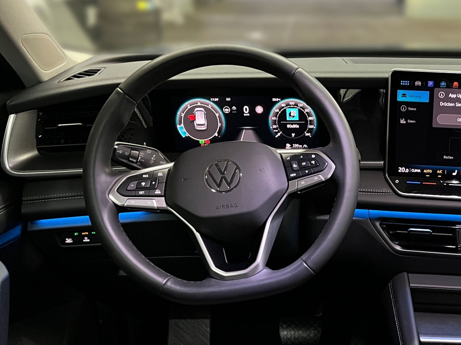 » Anhängevorrichtung anklappbar, mit elektrischer Entriegelung» Digital Cockpit Pro, mehrfarbig, verschiedene Info-Profile wählbar Assistenzsysteme: » Abbiege- und Schlechtwetterlicht» Ablenkungs- und Müdigkeitserkennung» Automatische Distanzregelung ACC stop & go» auf Fahrerseite abblendend, Memory-Funktion» Berganfahrassistent» Fahrassistent Travel Assist, Spurhalteassistent Lane Assist und Emergency Assist» Fernlichtassistent Light Assist» Geschwindigkeitsbegrenzer mit vorausschauender Regelung» Notbremsassistent Front Assist mit Fußgänger- und Radfahrererkennung» Regensensor» Reifenkontrollanzeige» Spurwechselassistent Side Assist, Ausparkassistent und Ausstiegswarnung» Verkehrszeichenerkennung Multimedia: » 2 USB-C-Schnittstellen vorn, 2 USB-C-Ladebuchsen an der Mittelkonsolehinten» App-Connect Wireless für Apple CarPlay und Android Auto» Digitaler Radioempfang DAB+» Navigationssystem Technik & Sicherheit: » 3D-LED-Rückleuchten» Außenspiegel elektrisch einstell-, anklapp- und beheizbar» Fahrlichtschaltung automatisch, mit LED-Tagfahrlicht sowie Coming home- und Leaving Home-Funktion» ISOFIX-Halteösen für Kindersitze auf denäußeren Rücksitzen sowie auf dem Beifahrersitz, i-Size-kompatibel» Klimaanlage Air Care Climatronic mit Aktiv-Kombifilter, Bedienelementen hinten und 3-Zonen-Temperaturregelung» Kopf- und Seitenairbags vorn und hinten,Center-Airbag» Notruf-Service, Laufzeit 10 Jahre ab Erstauslieferung, Voraussetzung: Verfügbarkeit benötigter Mobilfunknetze» Parkassistent Park Assist Plus inkl. Einparkhilfe» Schlüsselloses Startsystem Keyless Start ohne SAFE-Verriegelung» Start-Stopp-System mit Bremsenergie-Rückgewinnung» Umgebungsansicht Area View inkl. Rückfahrkamera Rear View Interieur: » 2 Sitzplätze in 3. Sitzreihe» 7-Sitzer-Paket: 2 Einzelsitze in der 3. Sitzreihe» Beifahrersitzlehne komplett umklappbar» Innenspiegel automatisch abblendend» Lendenwirbelstützen vorn pneumatisch einstellbar» Mittelarmlehne vorn» Multifunktionslenkrad in Leder, beheizbar, mit Schaltwippen» Sitzmittelbahnen der Vordersitze und der äußeren Rücksitzplätze in Stoff Life» Telefonschnittstelle Comfort mit induktiver Ladefunktion für 2 Smartphones, Ladeleistung bis zu 15 W» Vordersitze beheizbar, Sitzfläche und -lehne getrennt einstellbar Exterieur: » Dachreling schwarz Sonstiges: » inkl. Rücksitzbank und -lehne asymmetrisch geteilt umklappbar» Ladeleistung bis zu 45 W» 230-V-Steckdose im Gepäckraum, 12-V-Steckdose in der Mittelkonsole vorn» Ambientebeleuchtung 10-farbig, in der Instrumententafel» inkl. Anhängerrangierassistent Trailer Assist» Assistenzpaket IQ.DRIVE» Dekor-Set Life» Design-Leiste in Edelstahl am Dach» Fahrerlebnisschalter inkl. Innenraumerlebnis Atmospheres» Fahrprofilauswahl» Gepäckmanagement-System» Gepäckraumboden, ebene Ladefläche» Hinterachsgewicht Ausführung 4» Hybrid-Antriebssystem MHEV» Infotainment-Paket Discover» Infotainment-System mit 32,7-cm-Display (12,9 Zoll)» Leuchtweitenregulierung dynamisch» Multifunktionskamera» Sprachassistent IDA» Umfeldbeleuchtung mit Lichtprojektion» Volkswagen Logo vorn und hinten, Leiste zwischen den Scheinwerfern/Rückleuchten beleuchtet Garantie 60 Monate ab Tag der Erstzulassung, Angaben zum Hersteller: Volkswagen AG, Volkswagen, Berliner Ring 2, 38440 Wolfsburg, Deutschland, +49-5361-9-0, kundenbetreuung(at)volkswagen.de, Produktinformationen: https://www.volkswagen.de/idhub/content/dam/onehub_master/downloads/product-safety/volkswagen-sicherheitshinweise-de.pdf Die angegebenen Verbrauchsangaben beziehen sich auf WLTP-Werte. Zwischenverkauf und Irrtümer für dieses Angebot sind ausdrücklich vorbehalten. Ausschlaggebend sind einzig und allein die Vereinbarungen in der Auftragsbestätigung oder im Kaufvertrag. Den genauen Ausstattungsumfang, die genauen Kilometer und den Verkaufspreis erhalten Sie von unserem Verkaufspersonal. Bitte kontaktieren Sie uns. Finanzierung