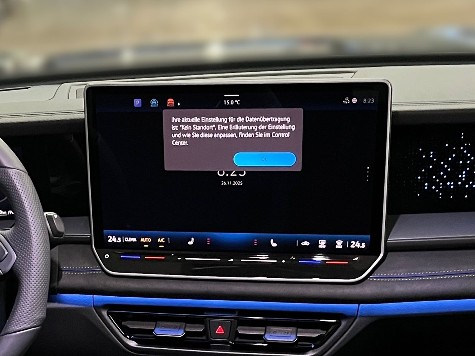 » Anhängevorrichtung anklappbar, mit elektrischer Entriegelung» Digital Cockpit Pro, mehrfarbig, verschiedene Info-Profile wählbar» Head-up-Display» Soundsystem Harman Kardon, 10+1 Lautsprecher, 700 Watt Gesamtleistung, digitaler 16-Kanal-Verstärker, Subwoofer» Vordersitze mit Massagefunktion Assistenzsysteme: » IQ.LIGHT - HD-Matrix-Scheinwerfer» Abbiege- und Schlechtwetterlicht» Ablenkungs- und Müdigkeitserkennung» Adaptive Fahrwerksregelung DCC Pro inkl.Fahrprofilauswahl» Automatische Distanzregelung ACC stop & go» auf Fahrerseite abblendend, Memory-Funktion» Berganfahr- und Bergabfahrassistent» Dynamischer Fernlichtassistent Dynamic Light Assist» Fahrassistent Travel Assist, Spurhalteassistent Lane Assist und Emergency Assist» Geschwindigkeitsbegrenzer mit vorausschauender Regelung» IQ.LIGHT - HD-Matrix-Scheinwerfer» Memory-Funktion für Parkassistent» Notbremsassistent Front Assist mit Fußgänger- und Radfahrererkennung» Regensensor» Reifendruck-Kontrollsystem» Spurwechselassistent Side Assist, Ausparkassistent und Ausstiegswarnung» Verkehrszeichenerkennung Multimedia: » 2 USB-C-Schnittstellen vorn, 2 USB-C-Ladebuchsen an der Mittelkonsolehinten» App-Connect Wireless für Apple CarPlay und Android Auto» Digitaler Radioempfang DAB+» Navigationssystem» Sprachassistent IDA und elektronische Sprachverstärkung Technik & Sicherheit: » 3D-LED-Rückleuchten mit dynamischer Blinkleuchte» Airbag für Fahrer und Beifahrer, mit Beifahrerairbag-Deaktivierung» Außenspiegel elektrisch einstell-, anklapp- und beheizbar» Fahrlichtschaltung automatisch, mit LED-Tagfahrlicht sowie Coming home- und Leaving Home-Funktion» ISOFIX-Halteösen für Kindersitze auf denäußeren Rücksitzen sowie auf dem Beifahrersitz, i-Size-kompatibel» Klimaanlage Air Care Climatronic mit Aktiv-Kombifilter, Bedienelementen hinten und 3-Zonen-Temperaturregelung» Kopf- und Seitenairbags vorn und hinten,Center-Airbag» Notruf-Service, Laufzeit 10 Jahre ab Erstauslieferung, Voraussetzung: Verfügbarkeit benötigter Mobilfunknetze» Parkassistent Park Assist Pro, inkl. Einparkhilfe» Schlüsselloses Schließ- und Startsystem Keyless Access, mit berührungsloser Ver- und Entriegelung, SAFE-Verriegelung» Start-Stopp-System mit Bremsenergie-Rückgewinnung» Umgebungsansicht Area View inkl. Rückfahrkamera Rear View Interieur: » Innenspiegel automatisch abblendend» Lendenwirbelstützen vorn pneumatisch einstellbar» Mittelarmlehne vorn» Multifunktions-Sportlenkrad in Leder, beheizbar, mit Schaltwippen» Rücksitzbank asymmetrisch teilbar» mit Durchlademöglichkeit und Mittelarmlehne» Sitzmittelbahnen der Vordersitze und deräußeren Rücksitzplätze in Stoff R-Line» Sport-Komfortsitze vorn» Telefonschnittstelle Comfort mit induktiver Ladefunktion für 2 Smartphones, Ladeleistung bis zu 15 W» Vordersitze beheizbar, Sitzfläche und -lehne getrennt einstellbar Exterieur: » Dachreling schwarz hochglänzend» Heckklappe mit sensorgesteuerter Öffnung und zeitverzögerter elektrischerSchließung, mit Fernentriegelung» R-Line» Seitenscheiben hinten und Heckscheibe abgedunkelt Sonstiges: » 12-V-Steckdose in der Mittelkonsole vorn» Ladeleistung bis zu 45 W» Allradantrieb 4MOTION» Ambientebeleuchtung 30-farbig, in der Instrumententafel sowie in den Türen» Dekoreinlagen vorn durchleuchtet» inkl. Anhängerrangierassistent Trailer Assist» Anhängevorrichtung inkl. Anhängerrangierassistent Trailer Assist» Assistenzpaket IQ.DRIVE» Außenspiegelgehäuse in Schwarz lackiert» Dekor-Set R-Line, durchleuchtet» Design-Leiste in Schwarz hochglänzend am Dach» Design-Paket Black Style» Einstiegsleisten vorn in Aluminium» Fahrerlebnisschalter inkl. Innenraumerlebnis Atmospheres» Hinterachsgewicht Ausführung 5» Infotainment-System mit 38,1-cm-Display (15 Zoll)» Interieur-Design-Elemente in Schwarz / Dark Anodized» Launch-Paket» Multifunktionskamera» längs verschieb- und klappbar» Türscheiben geräuschdämmend» Umfeldbeleuchtung mit Lichtprojektion» Volkswagen Logo vorn und hinten, Leiste zwischen den Scheinwerfern/Rückleuchten beleuchtet, mit Animation Garantie 60 Monate ab Tag der Erstzulassung, Angaben zum Hersteller: Volkswagen AG, Volkswagen, Berliner Ring 2, 38440 Wolfsburg, Deutschland, +49-5361-9-0, kundenbetreuung(at)volkswagen.de, Produktinformationen: https://www.volkswagen.de/idhub/content/dam/onehub_master/downloads/product-safety/volkswagen-sicherheitshinweise-de.pdf Die angegebenen Verbrauchsangaben beziehen sich auf WLTP-Werte. Zwischenverkauf und Irrtümer für dieses Angebot sind ausdrücklich vorbehalten. Ausschlaggebend sind einzig und allein die Vereinbarungen in der Auftragsbestätigung oder im Kaufvertrag. Den genauen Ausstattungsumfang, die genauen Kilometer und den Verkaufspreis erhalten Sie von unserem Verkaufspersonal. Bitte kontaktieren Sie uns. Finanzierung